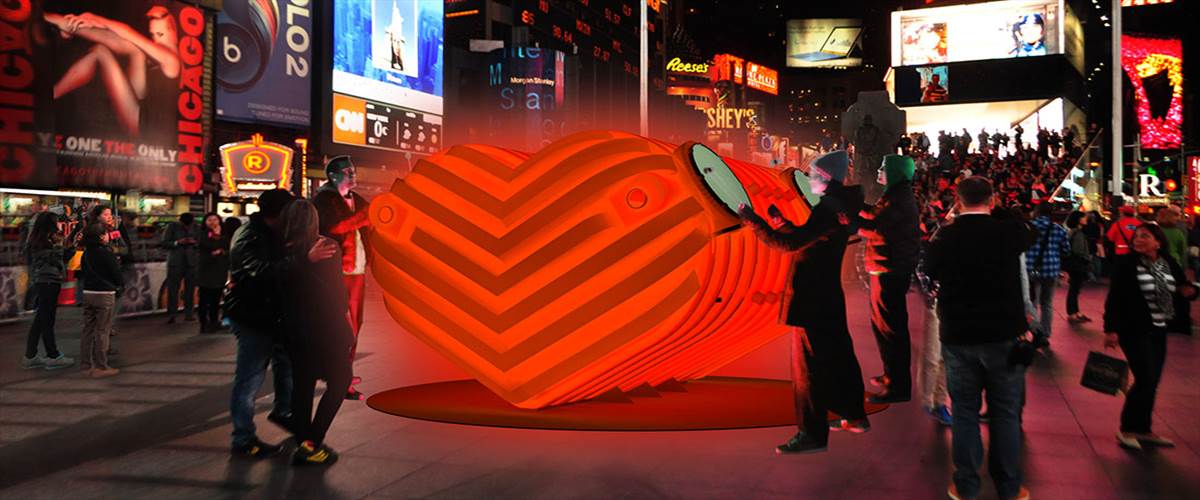 Ogni anno a febbraio, in occasione di San Valentino, a Times Square si celebra l’amore con l’istallazione di un’opera d’arte, selezionata tra le tante che vengono proposte alla Times Square Arts.