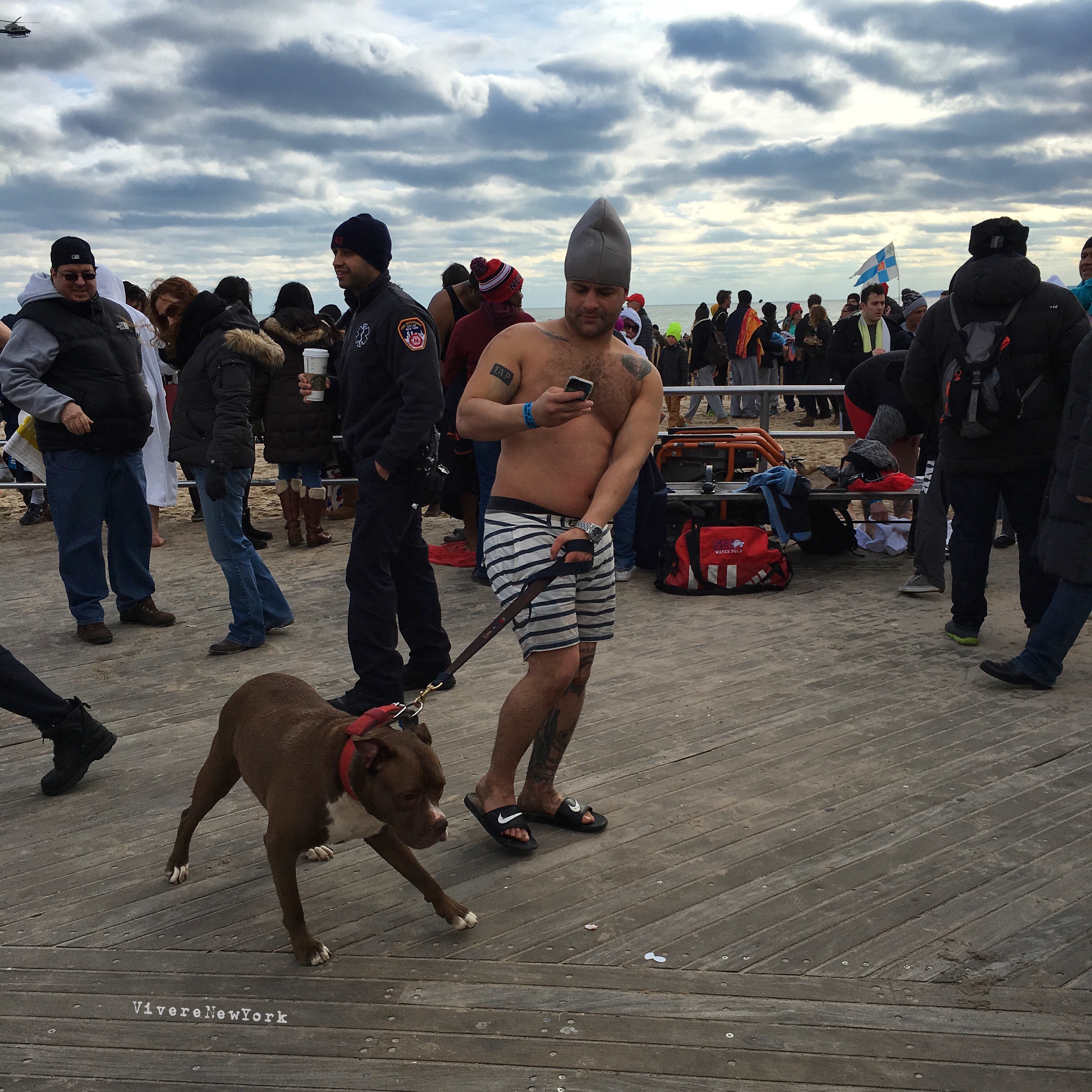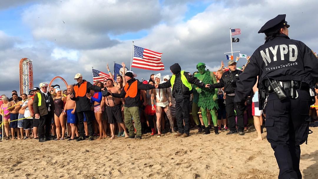 Il 1 gennaio, a partire da mezzogiorno, centinaia i newyorkesi – e sempre più turisti – si riversano sulla spiaggia di Brooklyn per unirsi ai Polar Bear nel “tuffo rigenerante“.